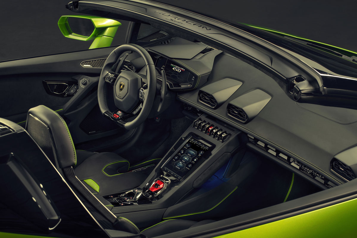 Chamada de Huracán Evo Spyder, a nova versão do superesportivo pode recolher a capota em velocidades de até 50 km/h em apenas 17 segundos, dando assim a oportunidade dos ocupantes ouvirem melhor o ronco do motor 5.2 V10 de 640 cavalos de potência e 61,2 kgfm de torque.