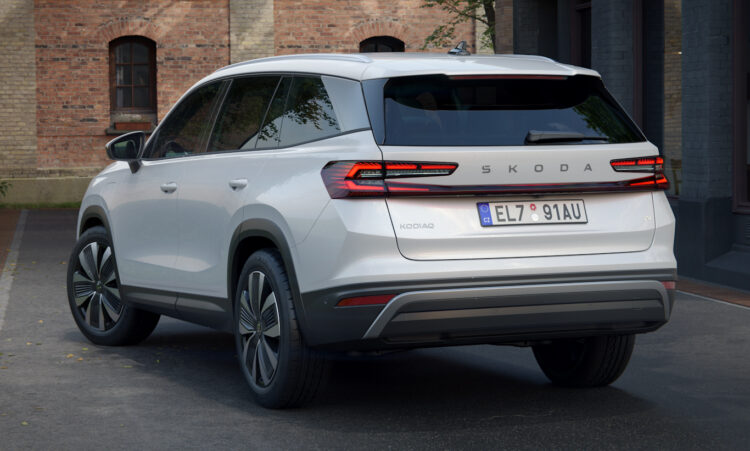 Na traseira, o Skoda Kodiaq traz novas lanternas conectadas com desenho bem parecido com o do Honda Accord de geração anterior. Contudo, assim como no Volkswagen Nivus, a parte inferior não é iluminada. Parte inferior do para-choque pode receber falsas saídas de escape ou elementos cinza a depender da versão.