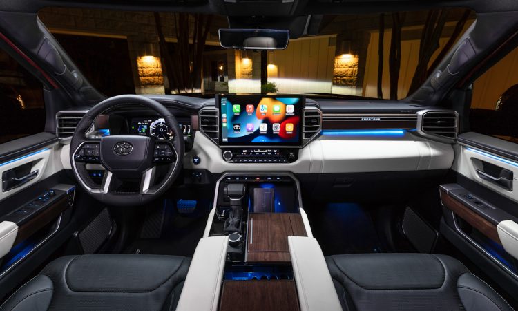 Com capacidade para levar até oito passageiros, o Toyota Sequoia traz interior verdadeiramente refinado. Todas as versões são equipadas com central multimídia de 14 polegadas e painel de instrumentos digital. Há opção de couro SofTex desde a versão de entrada. Já a partir da Limited, o Sequoia conta com opção de segunda fileira individual.