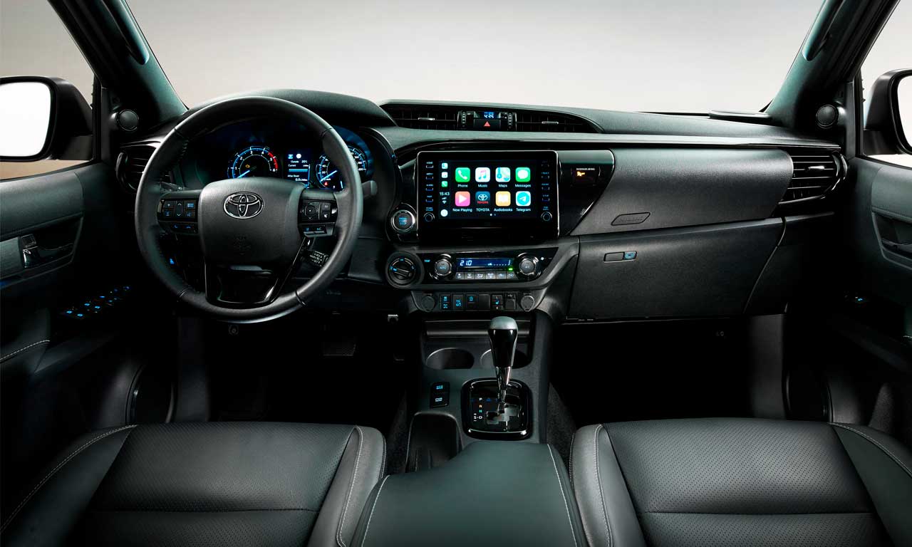 No visual da Hilux, a nova grade é emoldurada e ficou mais robusta. Já os faróis, também redesenhados, estão mais retos e iluminação em LED. Atrás, o trabalho foi bem leve nas lanternas e, agora, há a inscrição ‘Invincible’ (invencível, em português). As rodas têm novo estilo e 18 polegadas.
