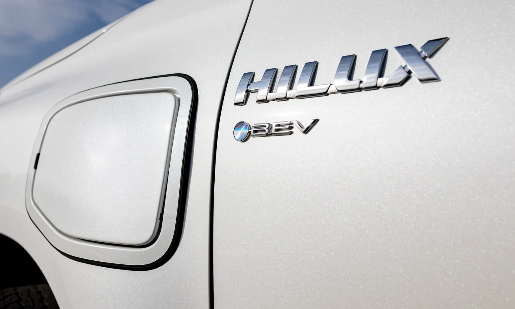 No quesito visual, a Toyota Hilux elétrica possui pequenas diferenças em relação à sua versão a combustão. Na dianteira, sua grade é fechada e as entradas de ar são mais estreitas. Tem ainda no para-lama dianteiro esquerdo o bocal para recarregar a bateria e as siglas BEV (significado em inglês para carros elétricos) espalhadas na carroceria.