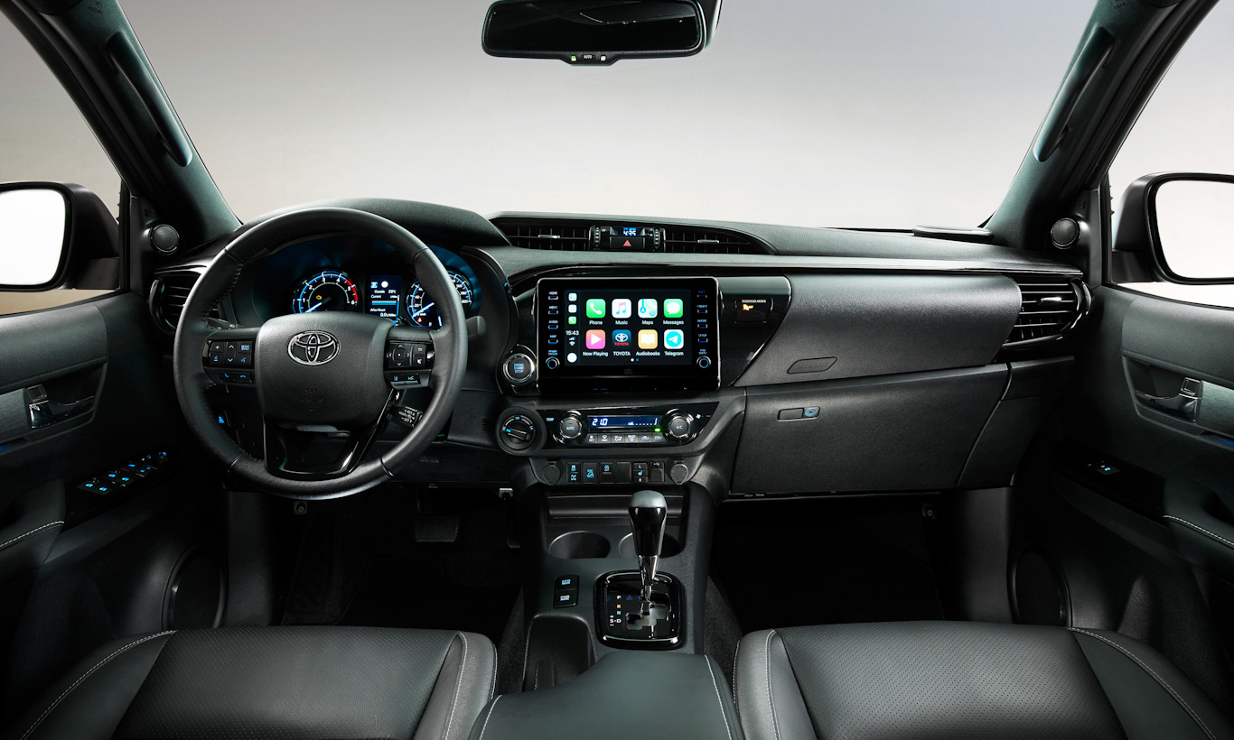 Por dentro, a Hilux Rocco tem bancos personalizados com costuras aparentes e logotipo especial estampado. Contudo, o restante da cabine segue sem mudanças. Isso inclui o sistema multimídia com Android Auto, Apple CarPlay, GPS e TV digital integrada.É possível que a Toyota Hilux Rocco ou Hilux Invincible mantenha o mesmo motor 2.8 quatro cilindros turbo diesel de 204 cv e 50,9 kgfm de torque. Ele é associado a tração 4×4 e transmissão automática de seis marchas. Não será dessa vez que a Hilux brasileira deverá contar com motor V6 diesel.