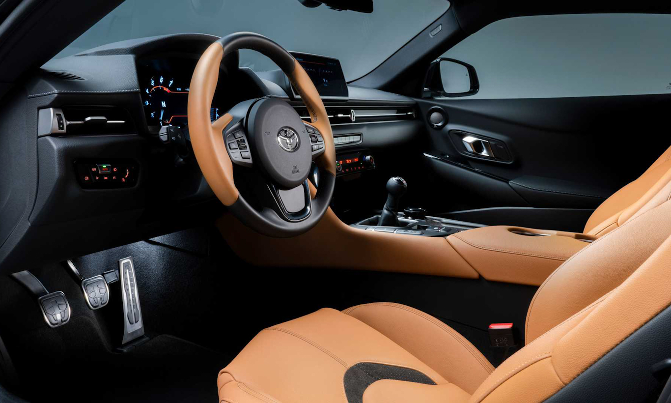 Foram removidos também os ajustes elétricos dos bancos e o de lombar. Ao todo, foram 38,3 kg emagrecidos na dieta da Toyota. Na Europa, esse GR Supra mais leve é a versão Lightweight e não tem número de produção limitado, ao contrário do A91-MT destinado aos Estados Unidos. Ambos, porém, são equipados com câmbio manual.