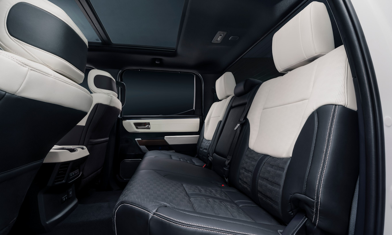 A picape grande da Toyota ainda conta com bancos dianteiros e traseiros com aquecimento e resfriamento. O volante tem aquecimento e traz o mesmo refinado couro dos bancos. Sistema de som JBL é parecido com o da Hilux, mas com 12 alto-falantes. Teto solar panorâmico é um dos grandes destaques, literalmente.