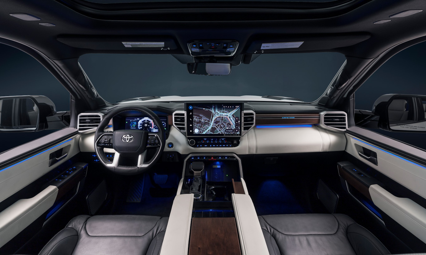 Na parte tecnológica, a Tundra Capstone ainda conta com head-up display de 10 polegadas, painel de instrumentos totalmente digital de 12,3 polegadas. Há ainda central multimídia de 14 polegadas com Android Auto e Apple CarPlay sem fio.