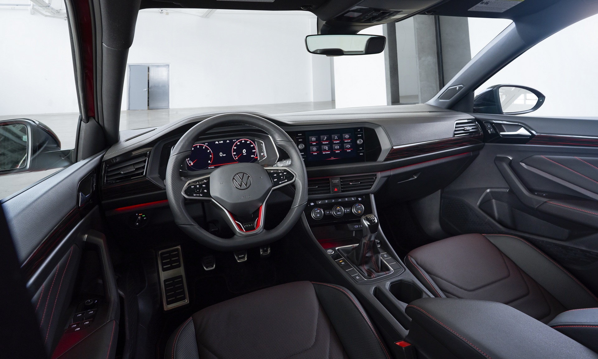 O mesmo vale para o GLI, versão que é comercializada aqui. No interior, a principal novidade fica por conta do novo volante, o mesmo de Nivus e Taos. Em todas as versões, ele recebe quadro de instrumentos Active Info Display com tela de 8 ou 10 polegadas, dependendo da versão. A central multimídia ganha conectividade com Android Auto e Apple CarPlay, além de Wi-Fi e de série recebe carregador wireless.