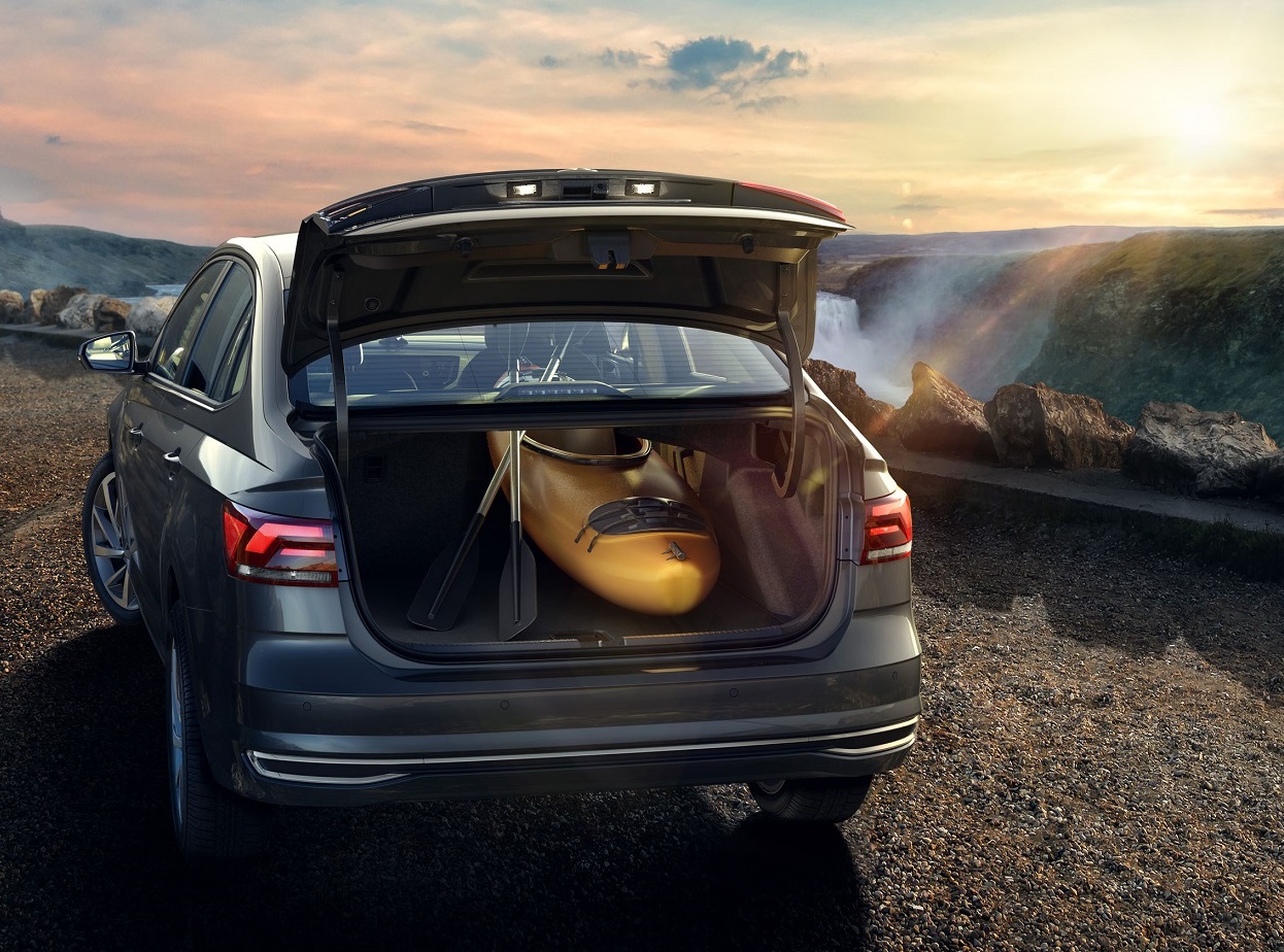 Assim como o Polo, o Virtus é construído com base na plataforma MQB, porém, ele foi “esticado” em relação ao hatch. Para se ter uma ideia, a distância entre-eixos do sedã é a mesma do atual Jetta: 2,65 m, ou 8,6 cm a mais do que o Polo. Como consequência, o comprimento também cresceu e o Virtus tem 4,48 metros, 42,5 cm a mais do que o hatch. Além do espaço interno — bem generoso para os ocupantes do banco traseiro, o modelo também se destaca pela capacidade do porta-malas, que acomoda 521 litros.