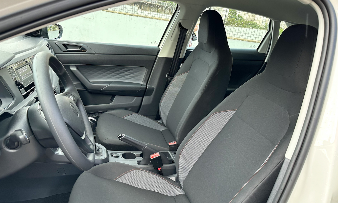 Na parte de segurança, o Polo Track já vem com quatro airbags de série, controle de tração e estabilidade, vetorização de torque, assistente de partida em rampa, aviso de afivelamento do cinto de segurança para todos os passageiros e luzes diurnas halógenas. É um modelo básico, mas que traz o essencial para o trabalho.
