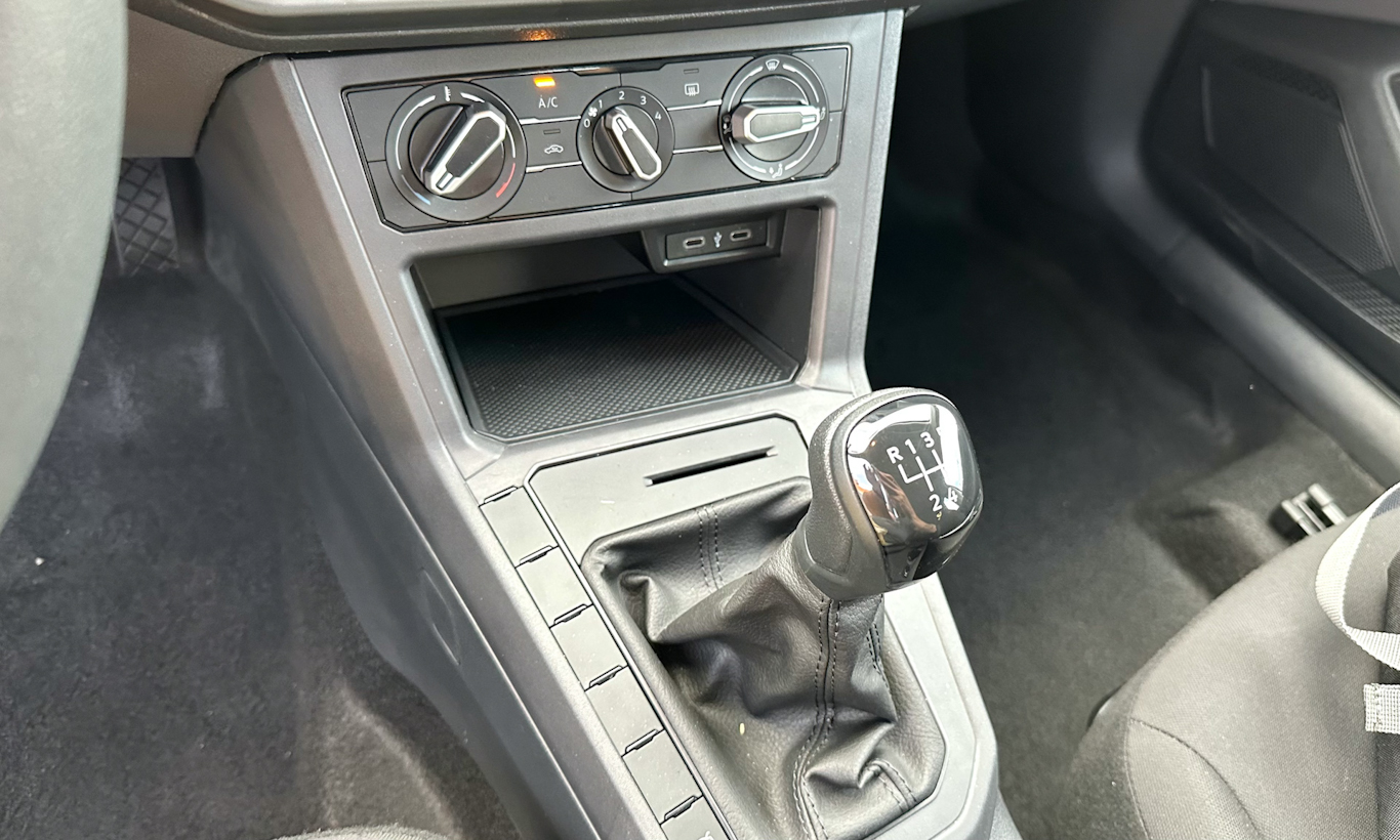 Sendo uma versão de entrada, o acabamento ruim típico do Volkswagen Polo até que não destoa tanto. A cabine é recheada de plásticos duros para todos os cantos e rebarbas aparentes. Ao menos há textura no painel que deixa as coisas um pouco mais interessantes do que antes.
