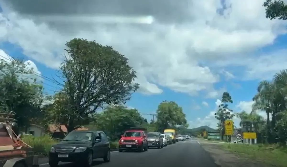 VÍDEO: Trânsito intenso na BR-280 trava acesso às praias paradisíacas da ‘cidade azul’ de SC