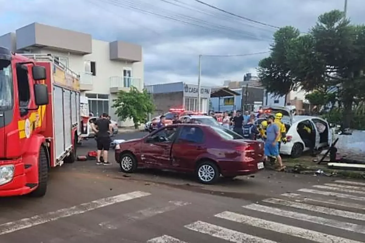 Duas pessoas ficaram feridas em um acidente com três veículos em Xanxerê, no Oeste de Santa Catarina. A colisão envolveu um adolescente sem habilitação, na tarde de sexta-feira. O Corpo de Bombeiros Militar e a PM (Polícia Militar) foram até o cruzamento das ruas Maranhão e Celestino do Nascimento, onde estavam os três veículos que se envolveram na colisão.