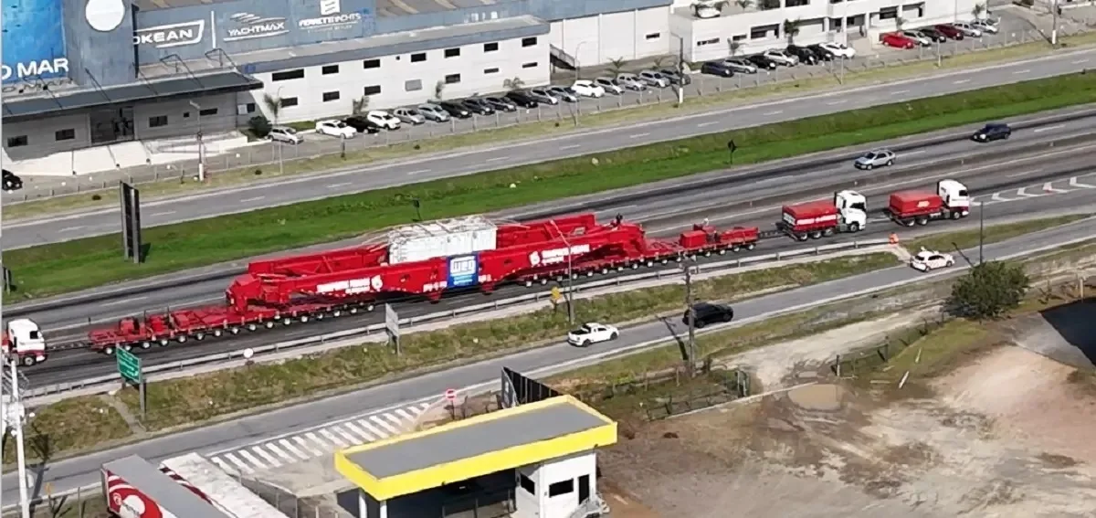 Transporte de carga superdimensionada em SC deixa trânsito lento na BR-470 e BR-101