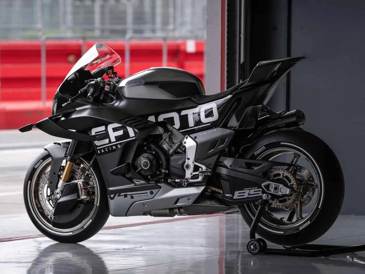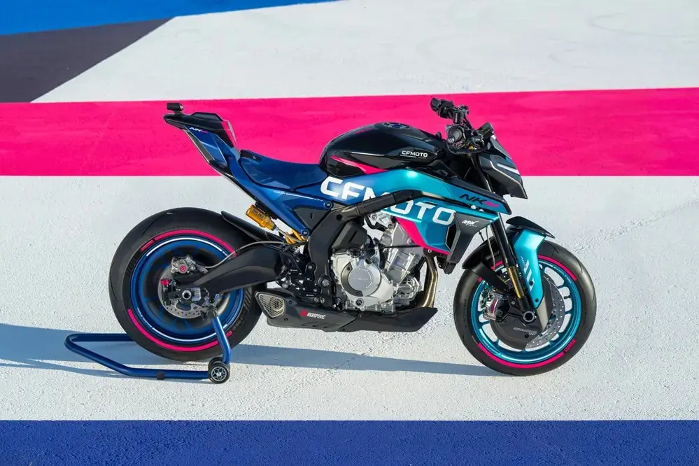 A roda traseira sólida, sem raios convencionais, abriga uma pinça Brembo montada na parte superior do disco, solução rara fora do universo das motos de corrida. Um acelerador rápido Domino arremata o pacote, reforçando o caráter experimental do modelo, que, segundo o Motorcycle News, antecipa o caminho da CFMOTO no segmento das naked esportivas de alta performance.