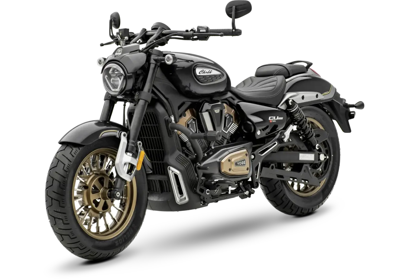 No EICMA 2025, a Voge apresenta seu mais recente símbolo dessa ambição global: a CU625. Uma custom moderna que combina personalidade e refinamento, marcada pelo guidão tipo drag bar, espelhos nas pontas dos manetes, detalhes escurecidos e o escapamento em estilo fatia de salame, que dá um toque clássico à sua identidade contemporânea.