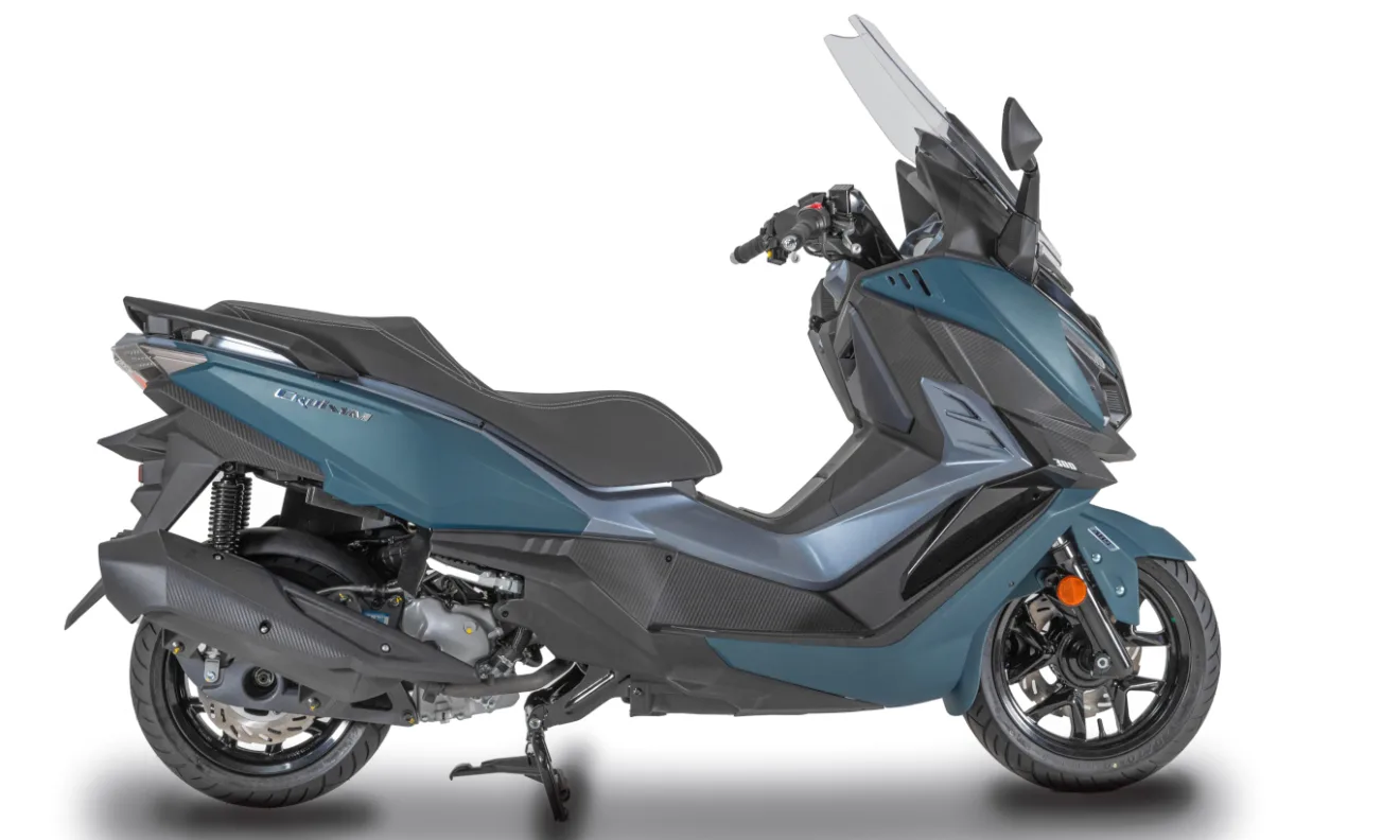 Em relação ao visual da scooter, a Dafra passou a disponibilizar duas tonalidades novas: o azul submarino e o verde petróleo. Dessa forma, quem comprar a SYM Cruisym 300 agora pode escolher entre essas novas tonalidades.