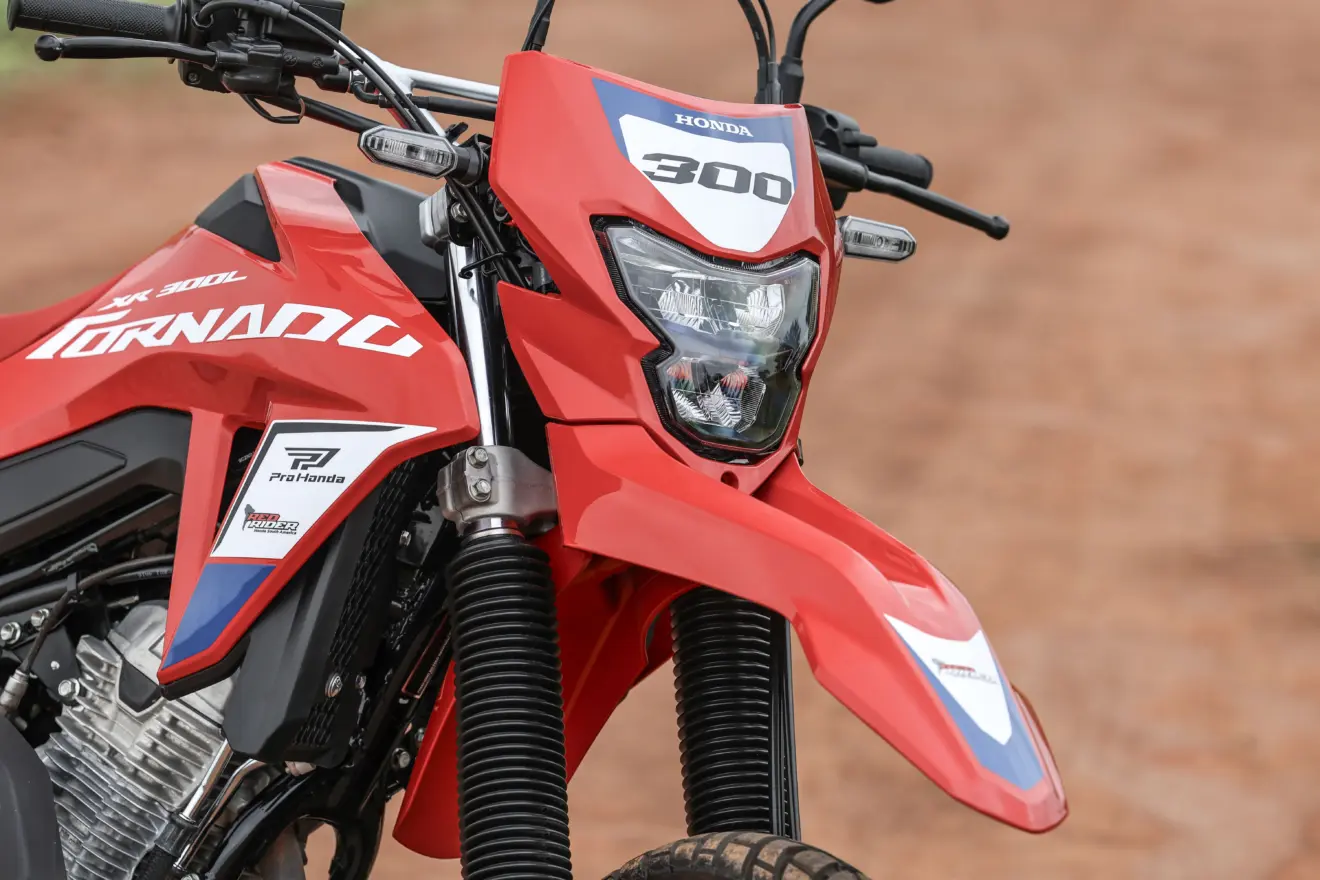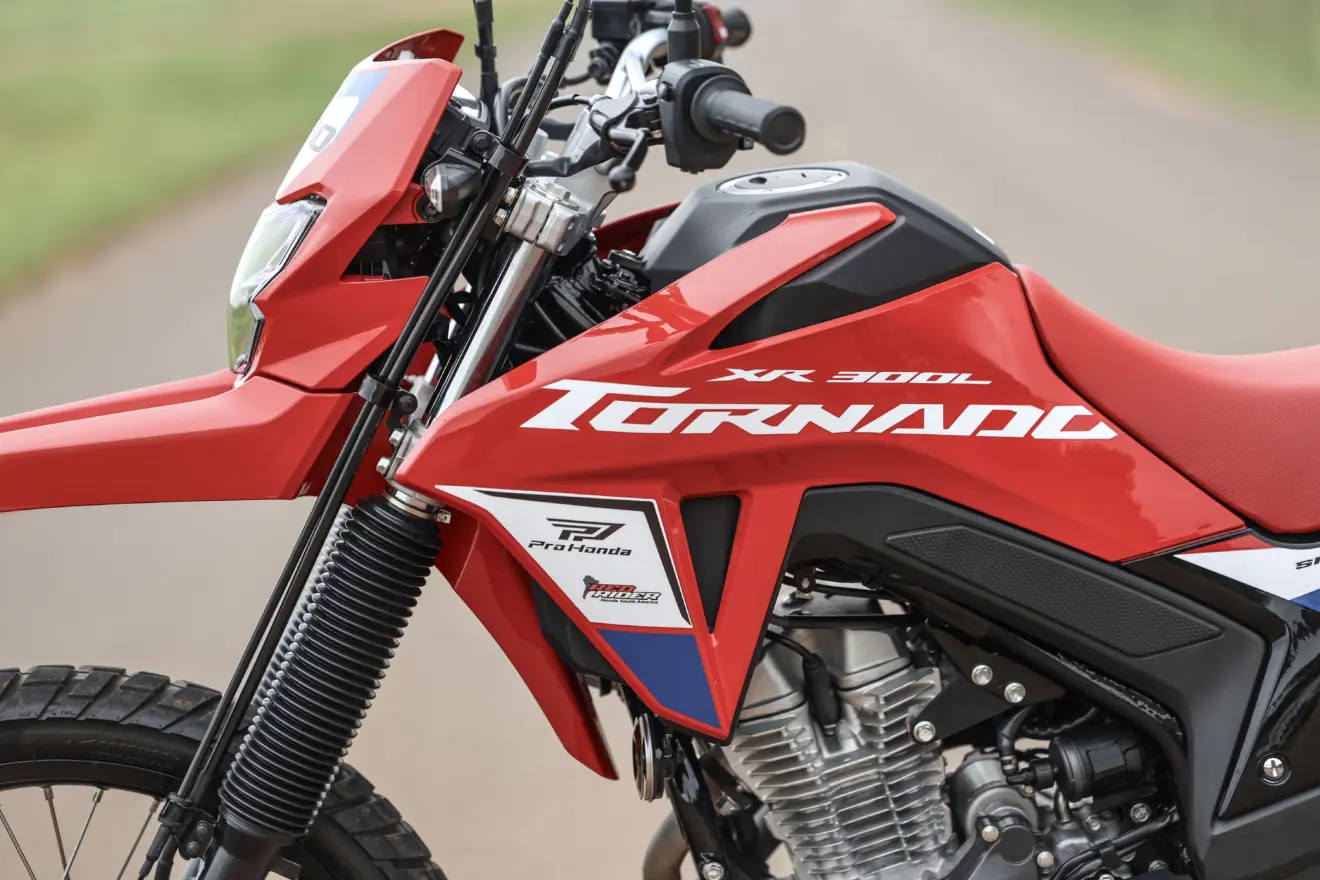 E, claro: a identificação visual, com logotipos que ratificam seu pedigree: Red Rider e Pro Honda, além da inscrição “300” nas carenagens, imitando as number plates das motos de rally. É para mostrar que a herança off-road está no DNA da Tornado.