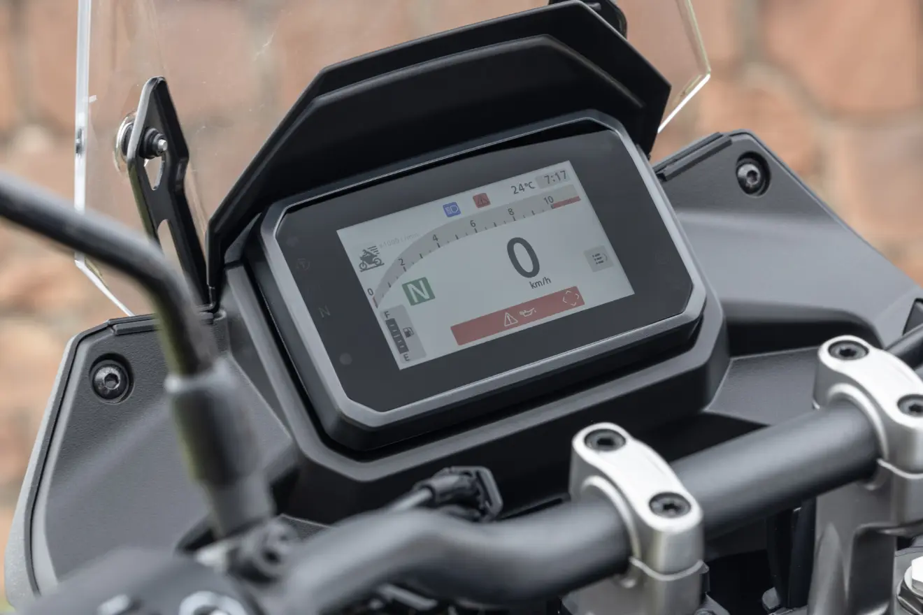 Além disso, o painel em TFT de 5 polegadas e o comando retroiluminado no punho esquerdo modernizam a interação. A arquitetura elétrica com CAN e BCU diminui cabos, otimiza comunicação e facilita diagnósticos.