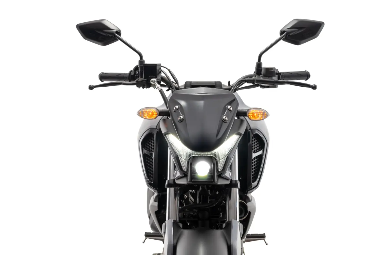 No visual, a FZ15 mantém sua proposta de mini street musculosa. O farol com projetor, as luzes em LED, as carenagens laterais volumosas e os pneus largos, especialmente o traseiro, colaboram para transmitir porte acima da cilindrada real, atraindo um público jovem que busca presença urbana sem abrir mão de economia de uso e manutenção.