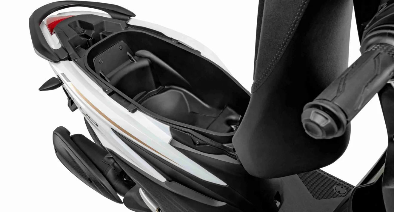 O porta-objetos da scooter tem 25 litros de capacidade e comporta um capacete grande fechado. Com esses atributos, a Yamaha Fluo 125 Hybrid 2026 marca um passo importante para a eletrificação no mercado de motocicletas no Brasil.