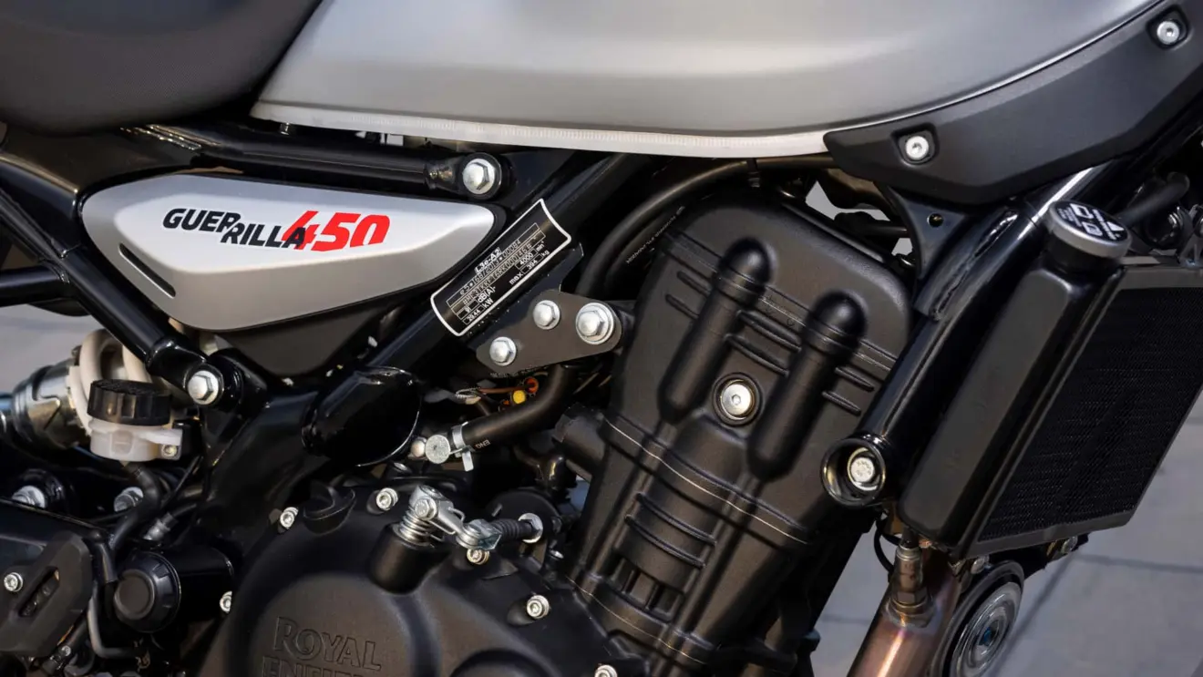 No coração da Guerrilla 450 pulsa um motor refrigerado a líquido, monocilíndrico, com comando duplo no cabeçote (DOHC) e quatro válvulas. Ele entrega 40 cv a 8.000 rpm e torque de 4,08 kgfm a 5.500 rpm.