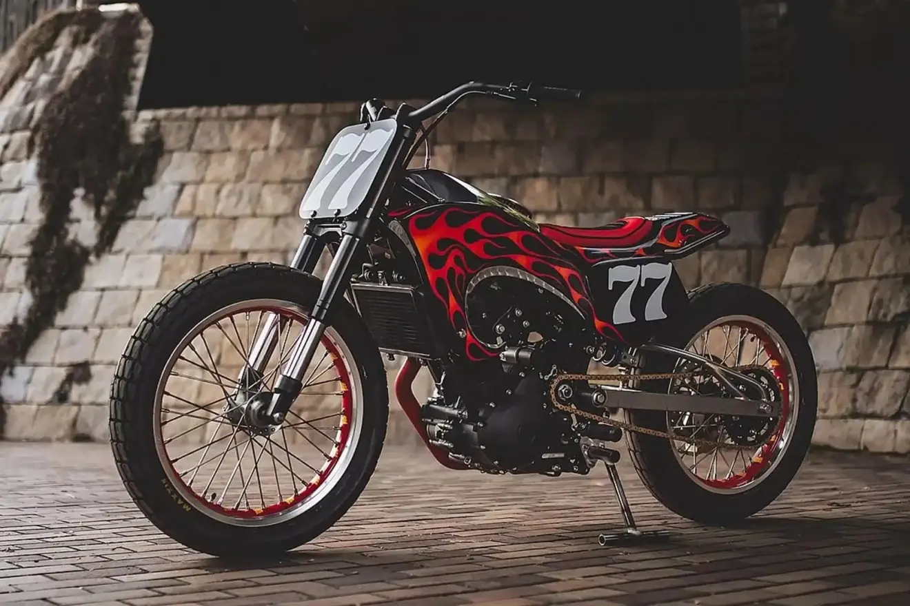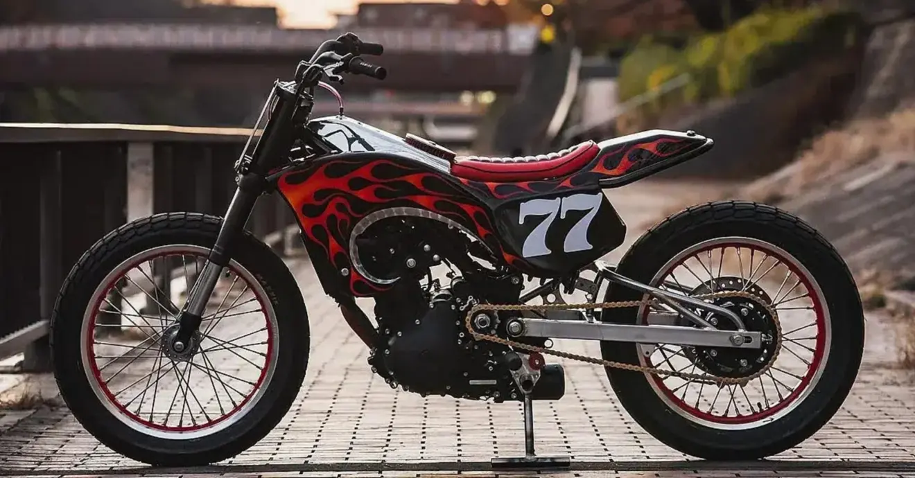 A inspiração vem diretamente das flat tracks americanas dos anos 70, período em que simplicidade, leveza e agressividade visual eram elementos centrais. Essa referência aparece de forma clara nas linhas enxutas, no porte compacto e na postura racing da moto.