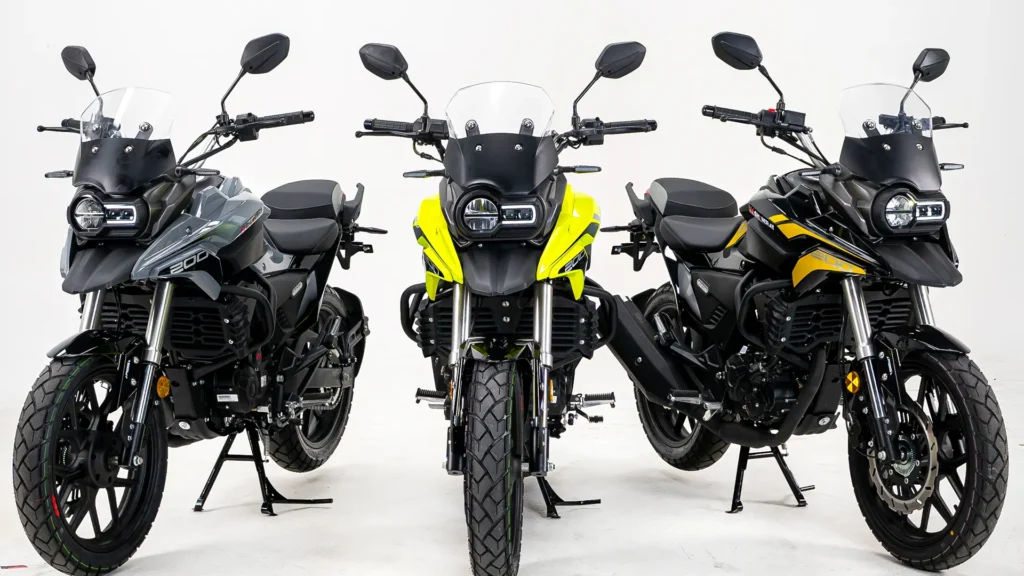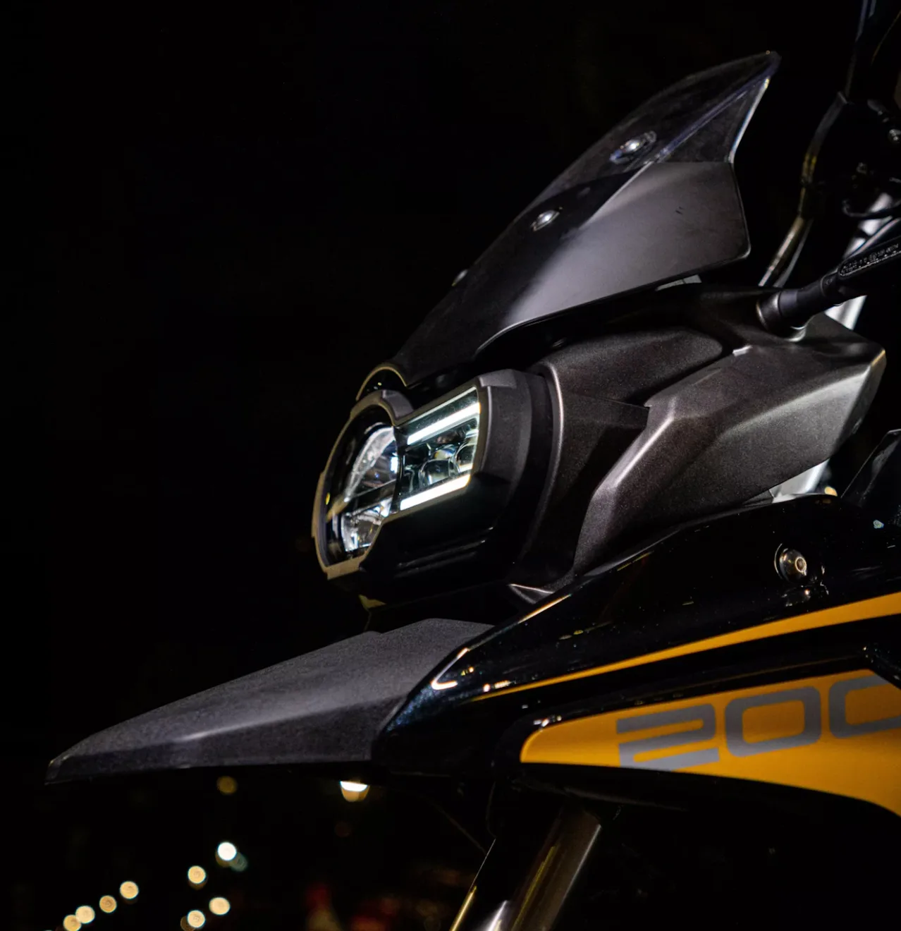 De frente, os faróis com bloco assimétrico lembram os modelos da linha GS da BMW. A motocicleta Storm 200 está disponível nas cores cinza, preta e amarela, com entregas previstas para começar em setembro deste ano.