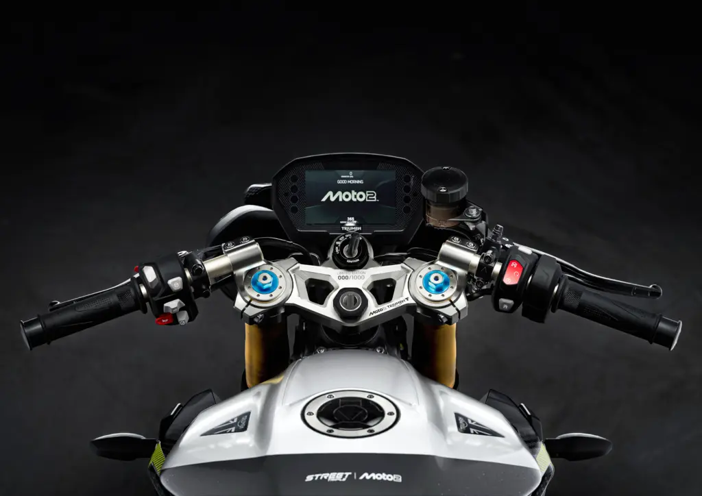 Já a Moto2 Edition fala outro idioma: o das pistas. É a homenagem da Triumph à sua presença no Mundial de Moto2, categoria que a marca abastece com exclusividade desde 2019. No visual, nas escolhas dos materiais e até no jeito de pilotar, ela busca aproximar o motociclista do universo das corridas.