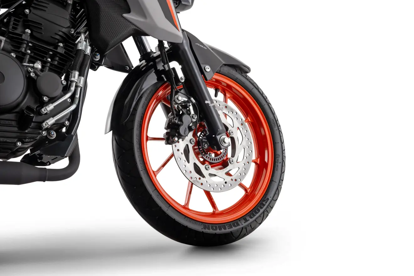 O sistema de freios ABS nas duas rodas, com discos de 282 mm na frente e 220 mm atrás, amplia a segurança em frenagens mais exigentes.