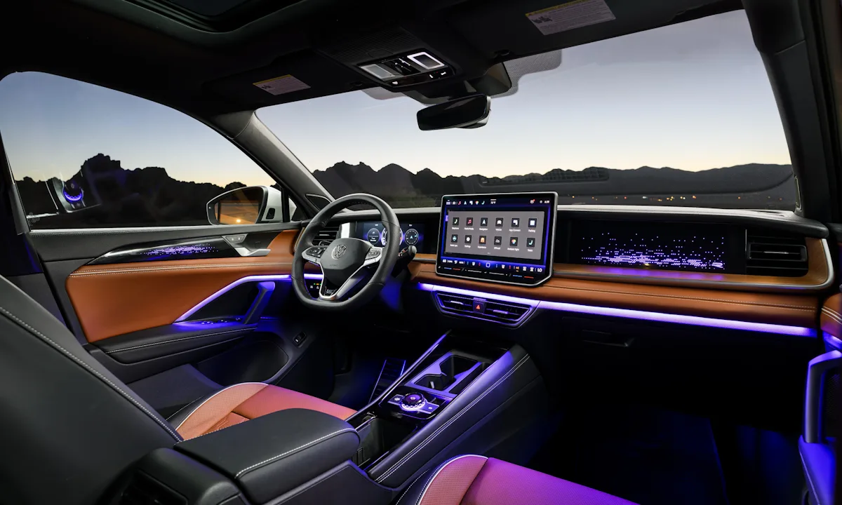 O interior do novo VW Tiguan está recheado de novidades. O visual datado deu lugar a um habitáculo moderno e sofisticado. Para as versões mais sofisticadas, a Volkswagen apostou em um belíssimo jogo de luzes com 30 variações de cores.