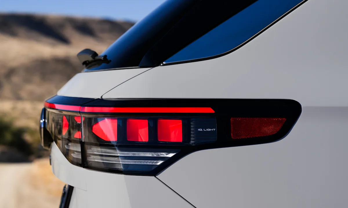 O novo VW Tiguan ganhou faróis mais finos que são interligados por uma barra luminosa de LED. A traseira segue a mesma linha estética com lanternas afiladas com refletores horizontais e são conectadas uma à outra por uma luz de LED. Enquanto no Tayron os refletores são verticais.