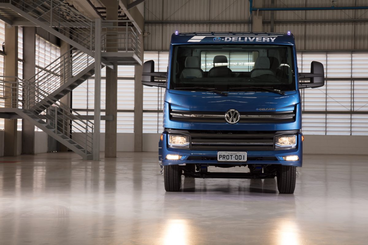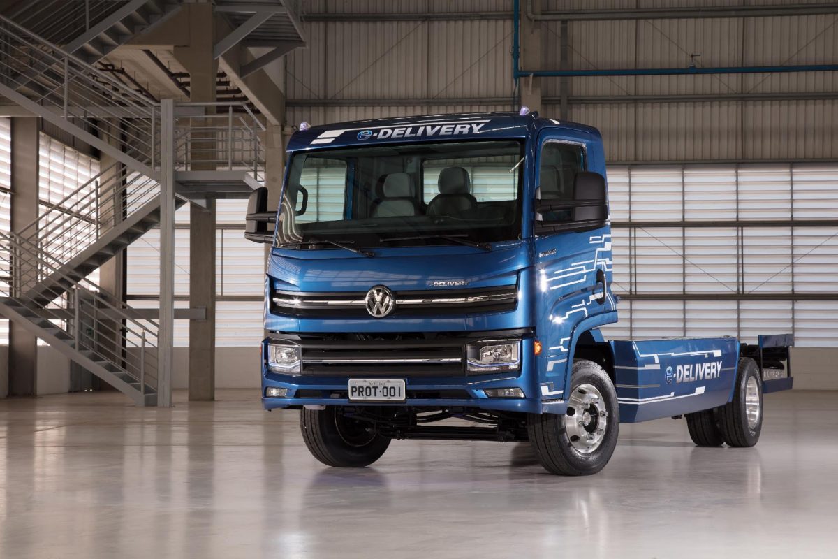 A Volkswagen Caminhões e Ônibus exibe na Fenatran o primeiro protótipo de caminhão leve 100% elétrico desenvolvido no Brasil: o e-Delivery. Segundo a marca, o caminhão conta com sistemas que ajustam a demanda da bateria de acordo com o seu uso, bem como sistema de recuperação de energia de frenagem — que recarrega as baterias.