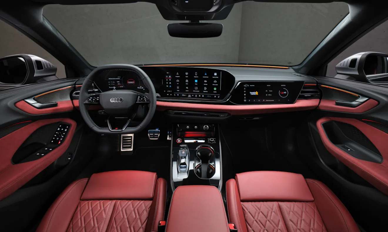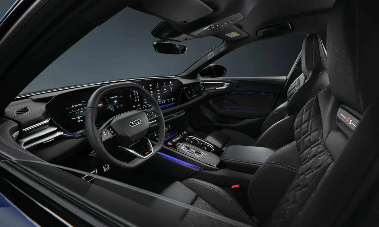 Tal qual o A3, o A5 deixa bem marcada a zona do motorista e a do passageiro, enquanto o desenho das portas parece abraçar quem senta no banco da frente. Luzes ambiente ajudam a dar uma atmosfera mais elegante e moderna ao mesmo tempo. Por fim, uma tela opcional pode ser usada pelo passageiro para entretenimento.