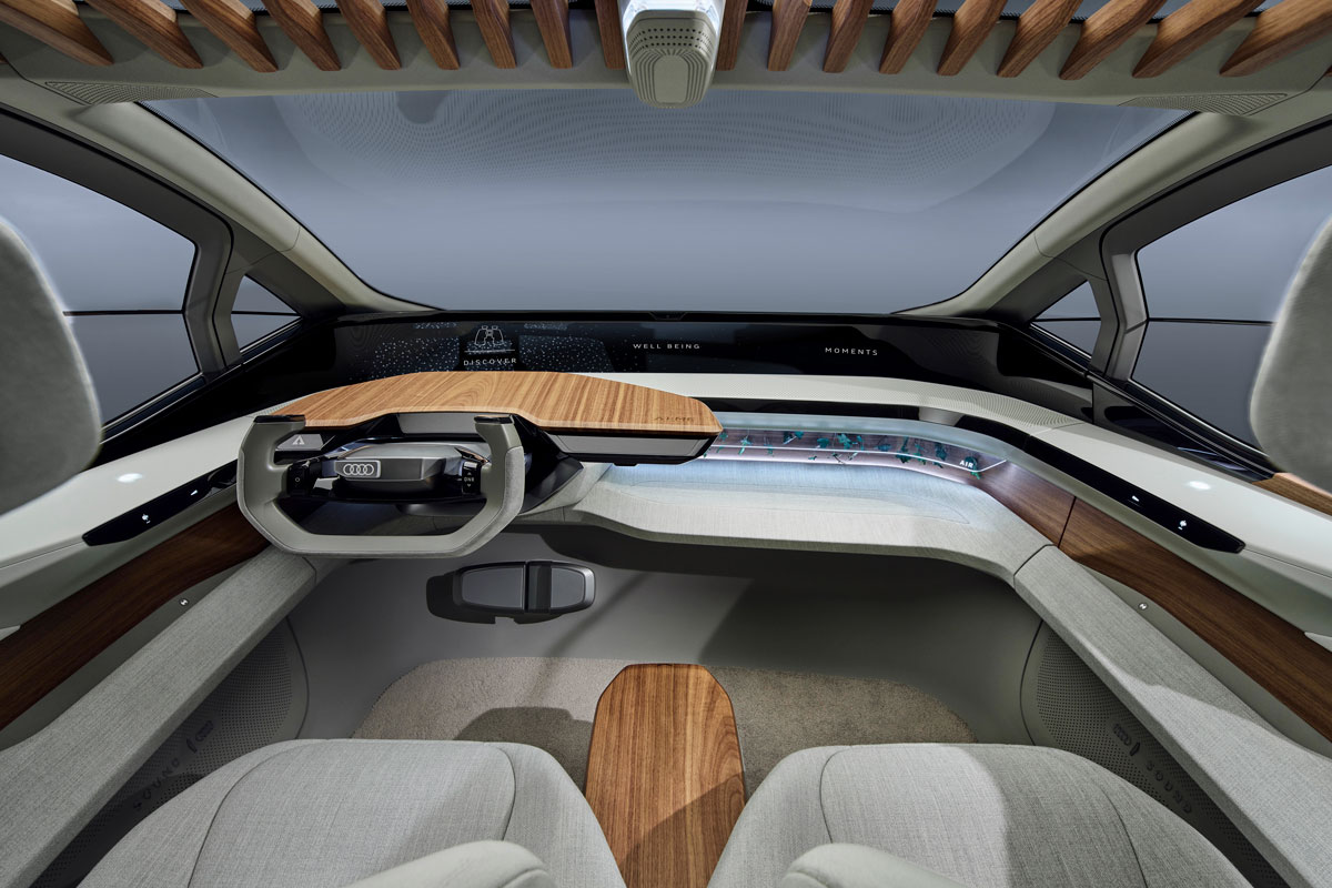 Visando o bem-estar dos ocupantes, a Audi disponibiliza no conceito óculos de realidade virtual – inclusive para o motorista. Esses óculos permitem que os passageiros fiquem imersos em realidade virtual enquanto o carro dirige sozinho.