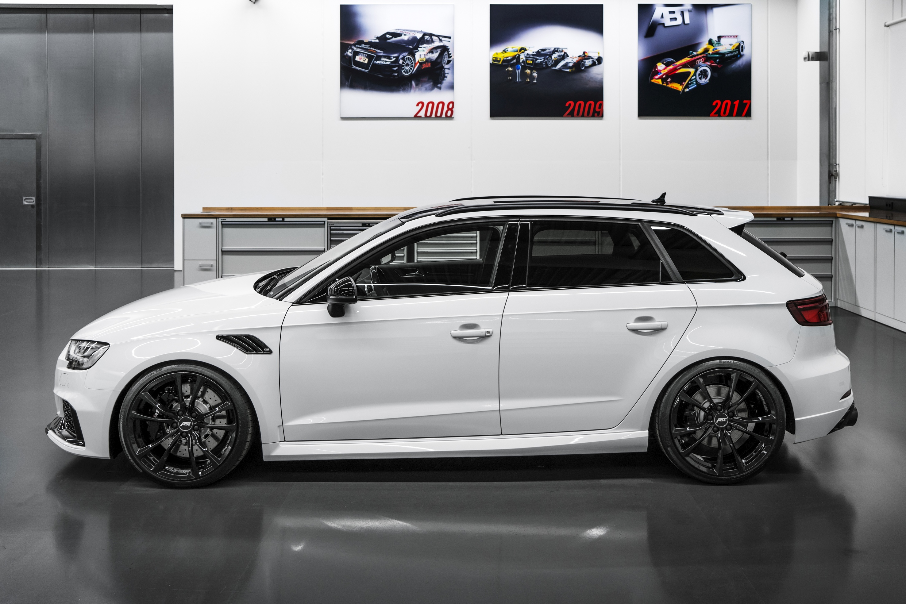 O RS 3 recebeu ainda molas, amortecedores e estabilizadores especiais, bem como freios de alto desempenho e escapamento esportivo para deixar o ronco ainda mais intimidador. Visualmente, ele traz para-choques com splitters em preto brilhante, grade dianteira pintada de preto, saias laterais, difusor traseiro e rodas de 19 ou 20 polegadas. O logo ABT se faz presente na grade frontal e porta-malas.