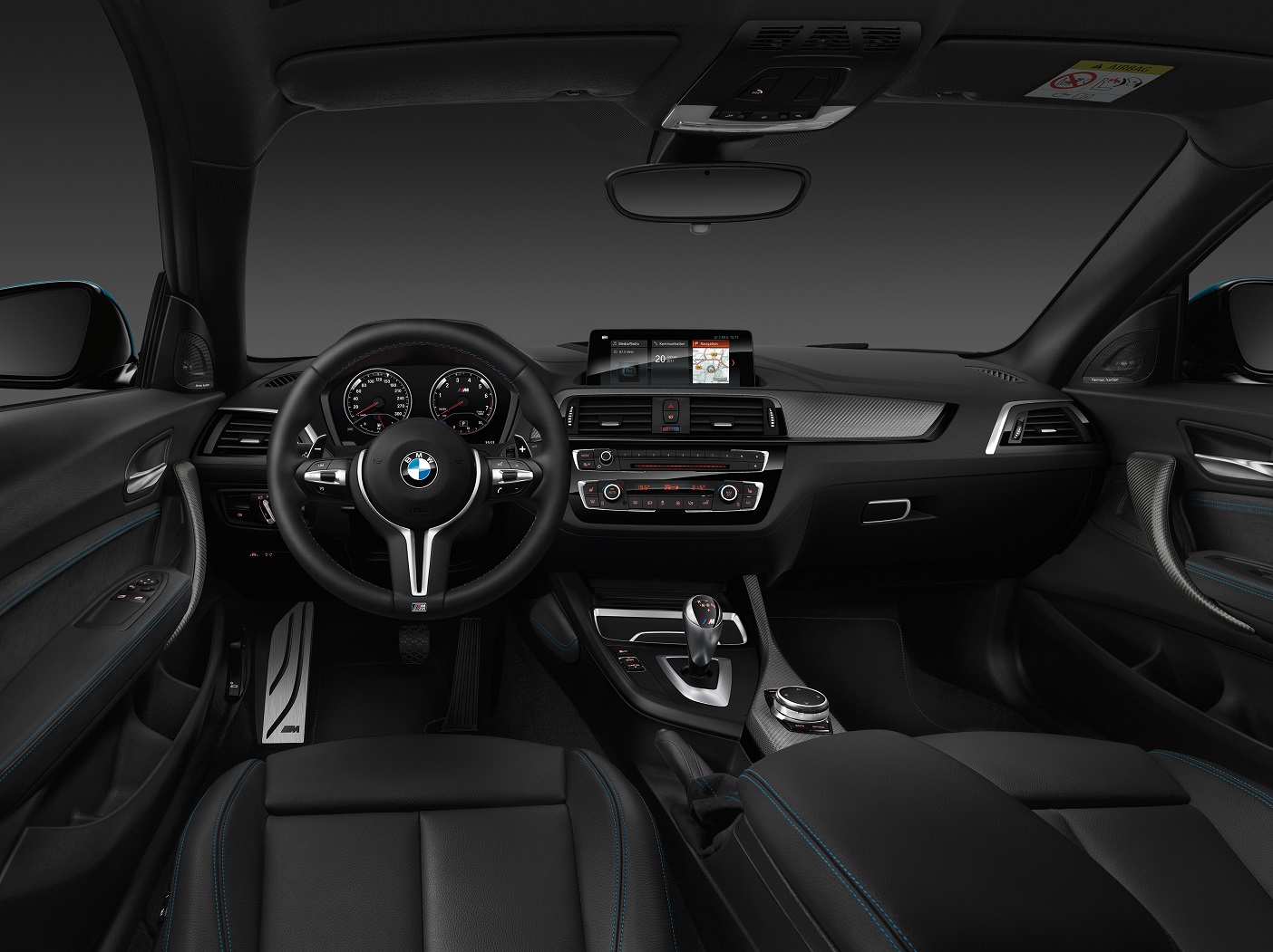 Debaixo do capô, o cupê esportivo ostenta um motor biturbo seis cilindros em linha de 3,0 litros que entrega 370 cv e 47,5 kgfm de torque — que vai a 51 kgfm de torque com overboost temporário. Ele tem câmbio automatizado de dupla embreagem de sete marchas que despeja a força na tração traseira, permitindo o M2 ir de 0 a 100 km/h em 4,3 segundos e atingir a máxima de 270 km/h (com pacote M Driver).