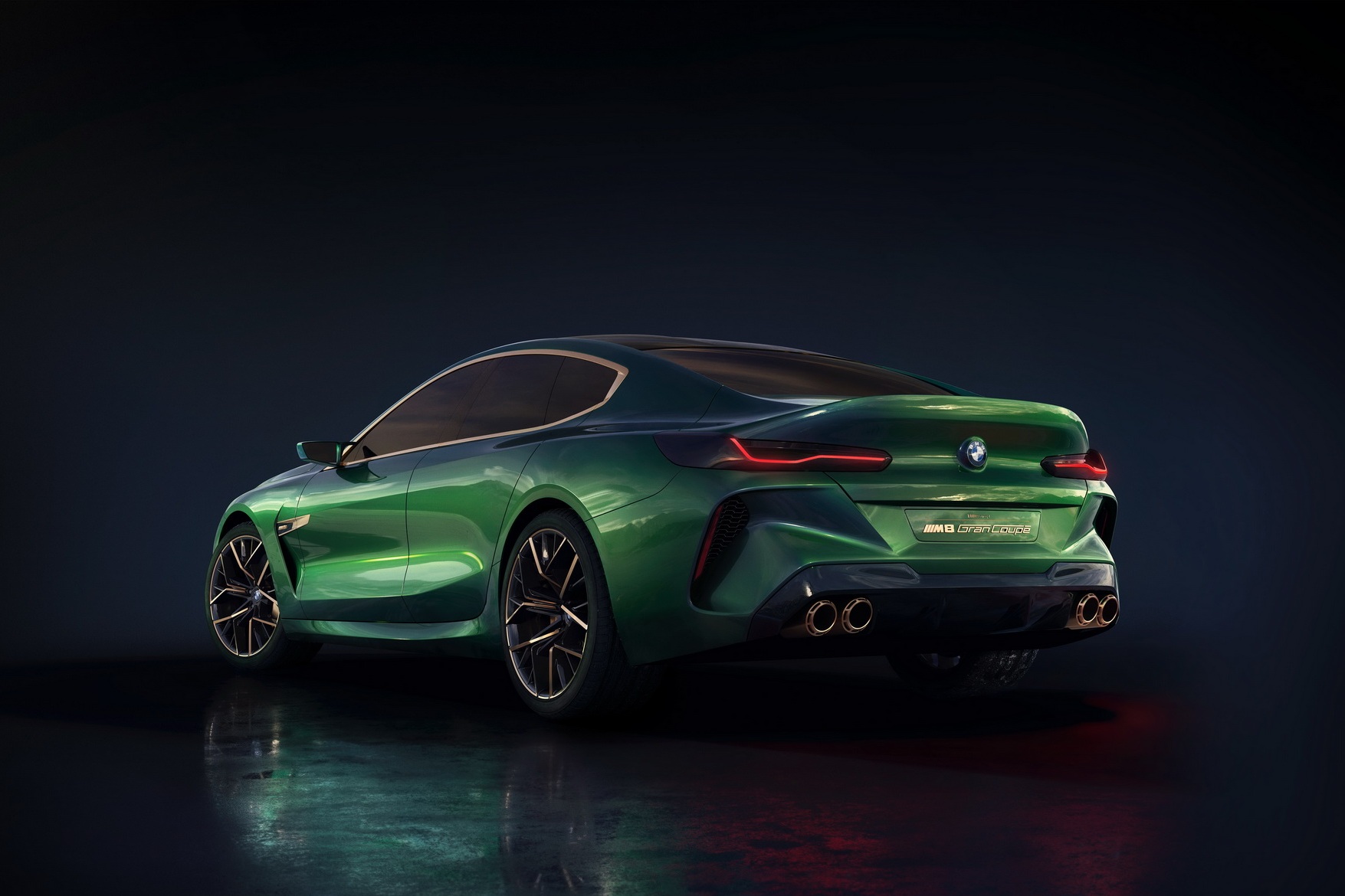 O estilo do conceito M8 Gran Coupe é formado por um amplo para-choque dianteiro, grade frontal dourada, faróis afilados com iluminação amarela e saída de ar atrás dos para-lamas dianteiros que se prolongam pelas laterais côncavas do carro. A traseira traz um spoiler integrado ao desenho da carroceria, além de lanternas estreitas e quatro saídas de escapamento.