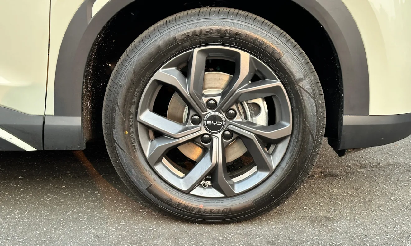 O novo modelo do fabricante chinês vem equipado com rodas de liga leve de 17 polegadas, calçadas com pneus de medidas 215/60.