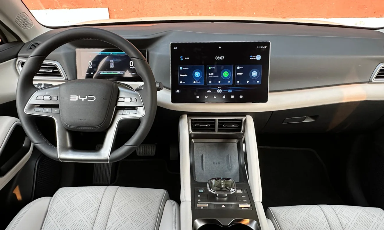 A cabine mantém a boa qualidade construtiva dos outros modelos da BYD. Entre os destaques, estão a central multimídia giratória de 12,8 polegadas e o quadro de instrumentos totalmente digital. O acabamento interno é um dos trunfos do Yuan Pro para enfrentar a concorrência, enquanto o porta-malas, com capacidade de 265 litros, pode chegar a 1.210 litros com os bancos traseiros rebatidos.