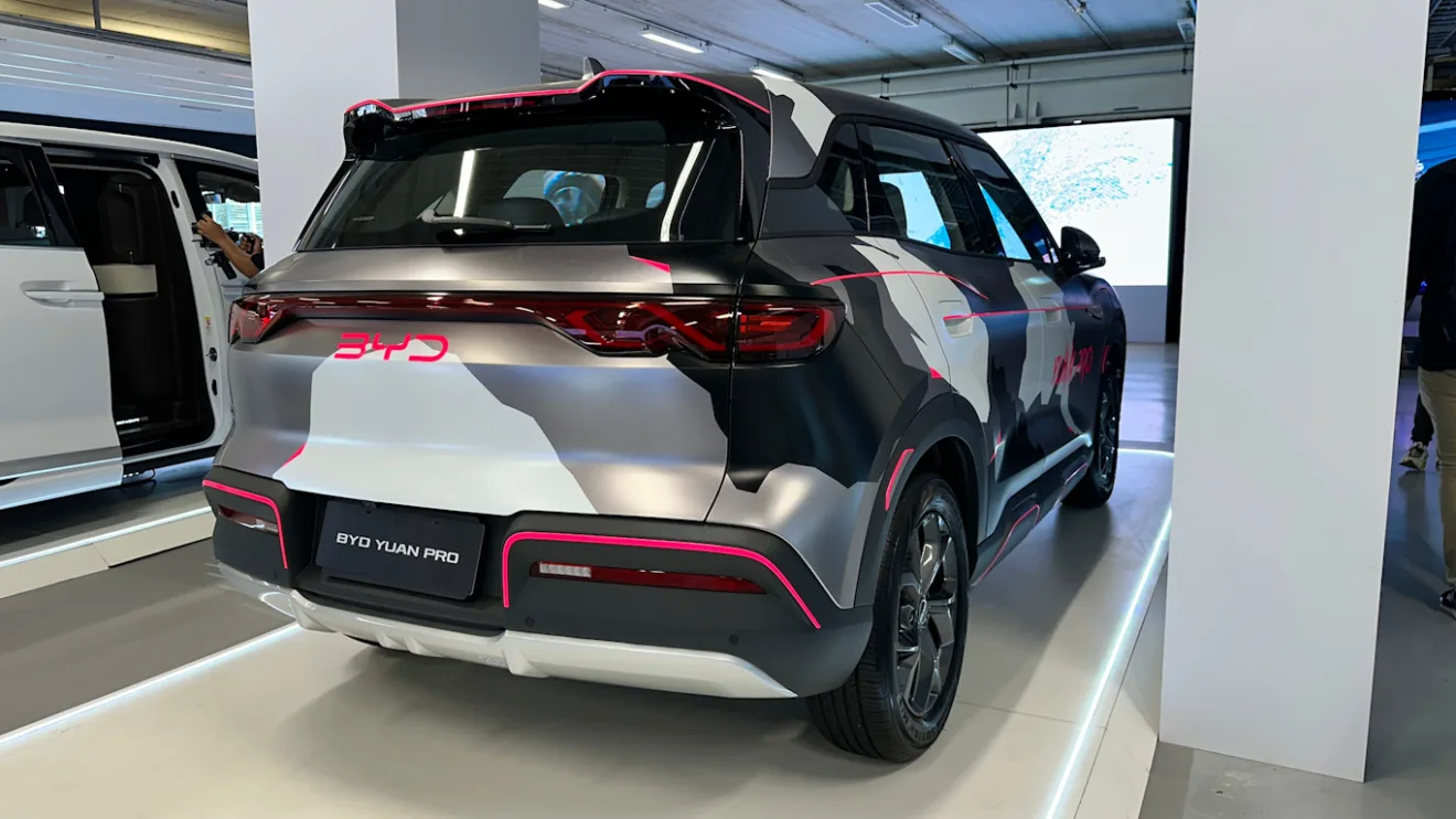 Baseado no Dolphin, o Yuan Pro é um SUV elétrico compacto, menor que o Yuan Plus. Ele tem 4,31 m de comprimento, 1,83 m de largura, 1,67 m de altura e o entre-eixos é de 2,62 m. Seu visual é sóbrio, com faróis estreitos na dianteira, uma lateral sem muitos vincos, e lanternas traseiras que, justamente, lembram as do Dolphin.