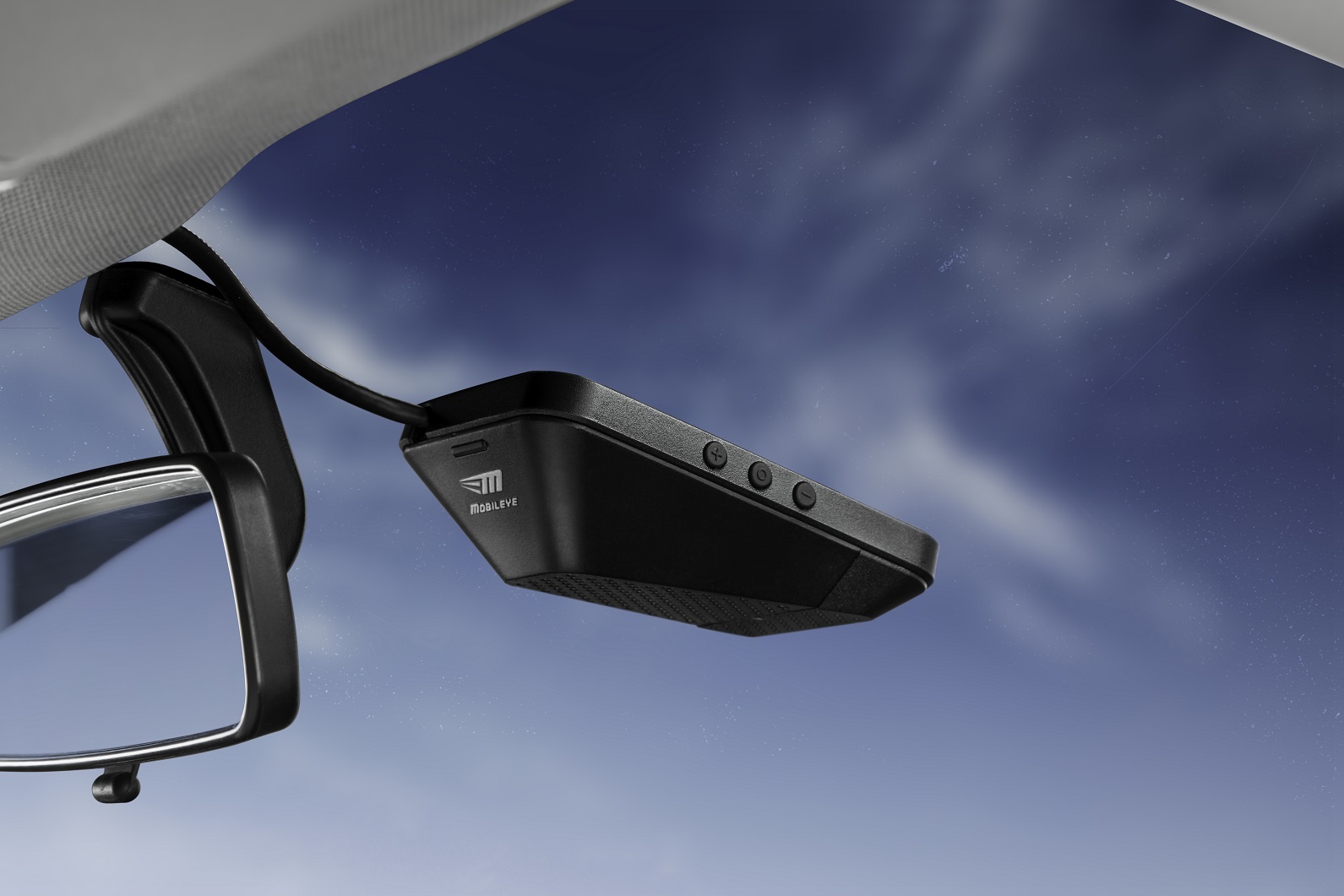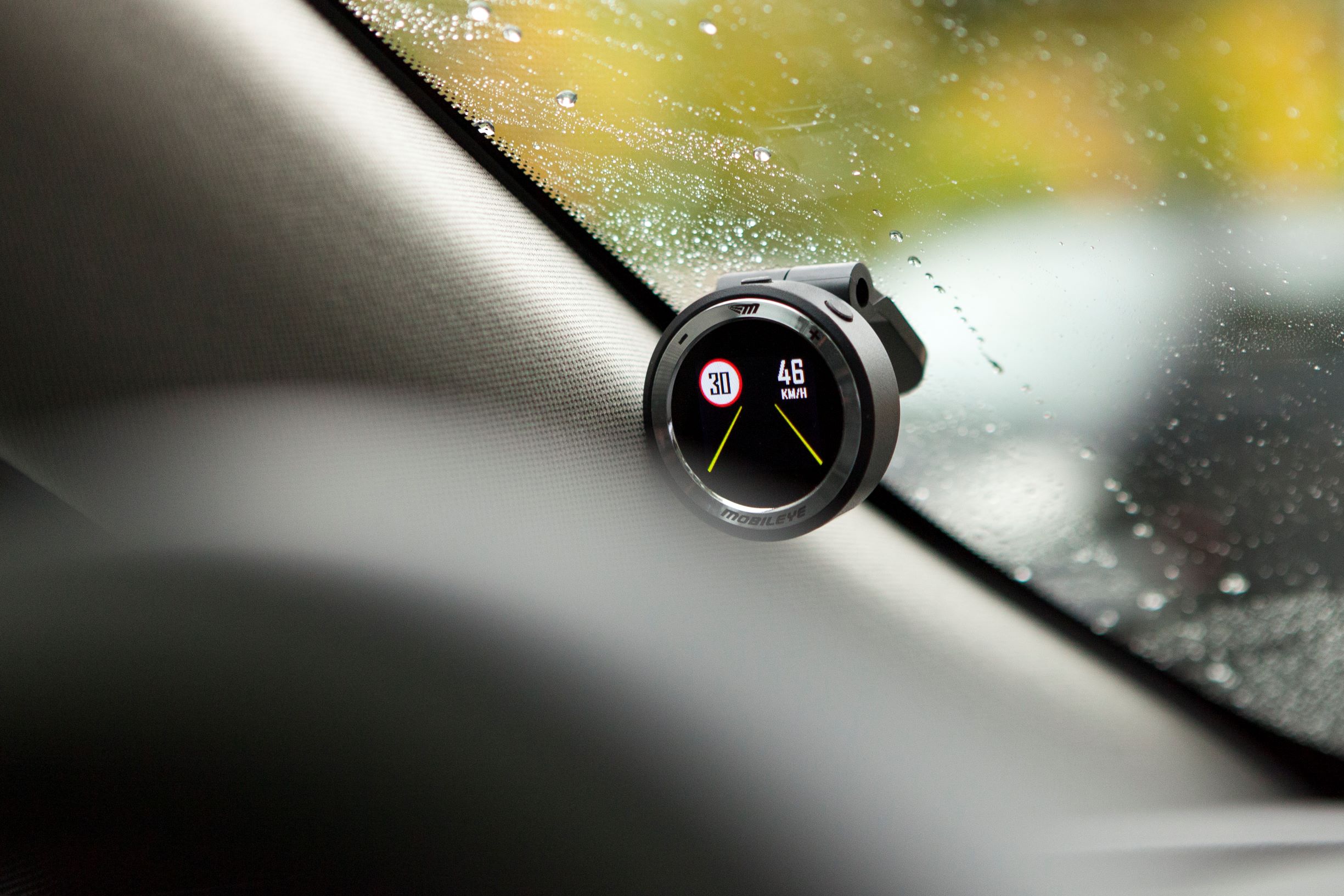 Formado por uma câmera instalada no para-brisa do carro e um sistema próprio, o Mobileye pode identificar formas, veículos e pedestres, além de texturas – como marcações de faixa e placas de sinalização de trânsito. Ou seja, ele pode fazer a leitura de placas de velocidade máxima, calcular distância entre os veículos e prever colisões de forma antecipada.
