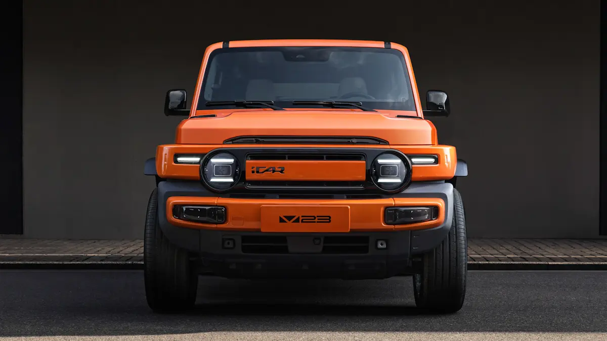 Por outro lado, o grande destaque global da iCar hoje é o V23. O modelo aposta em um visual retrô bem marcante. Ele claramente bebe da fonte de clássicos como o Toyota Bandeirante, o Land Rover Defender e o Ford Bronco.