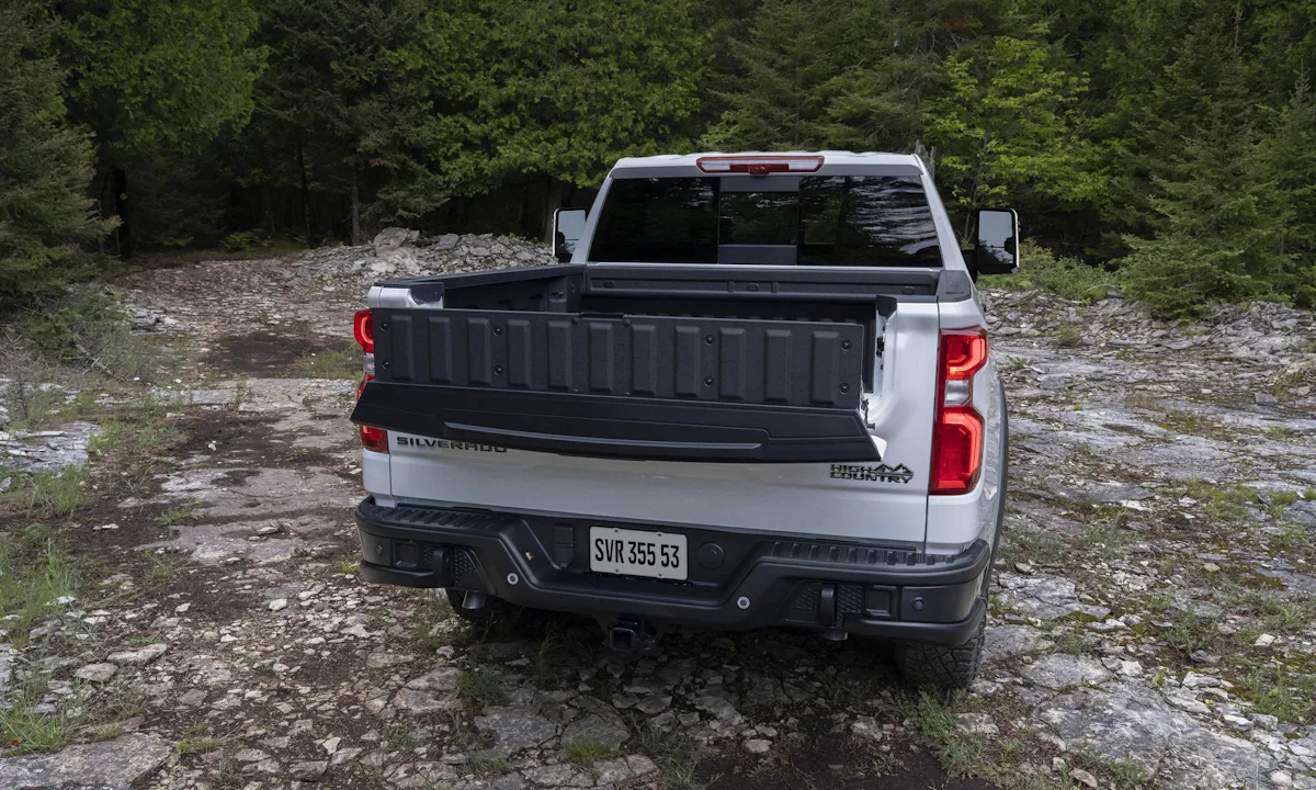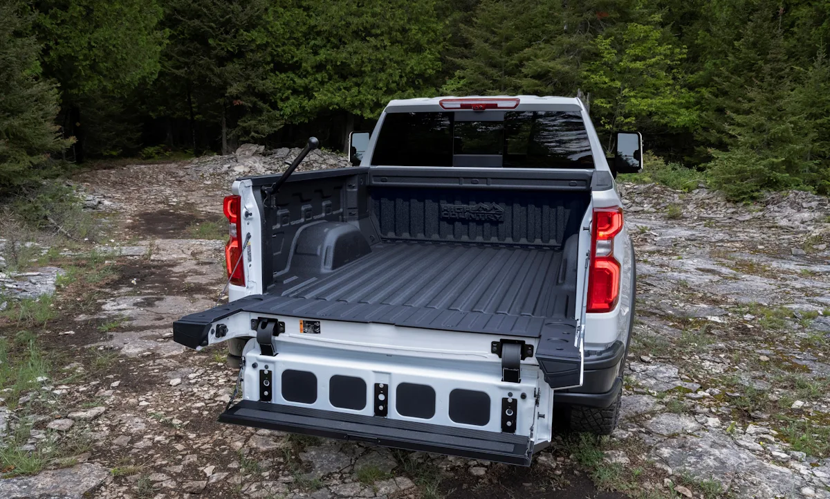 A tampa da caçamba da Silverado 2025, chamada de Multi-flex (mesmo nome que a GM usa para a caçamba da Montana) conta com seis modos de atuação diferentes. Através de um recorte na parte superior com dobradiças separadas, ela permite uma maior flexibilidade de uso na caminhonete.
