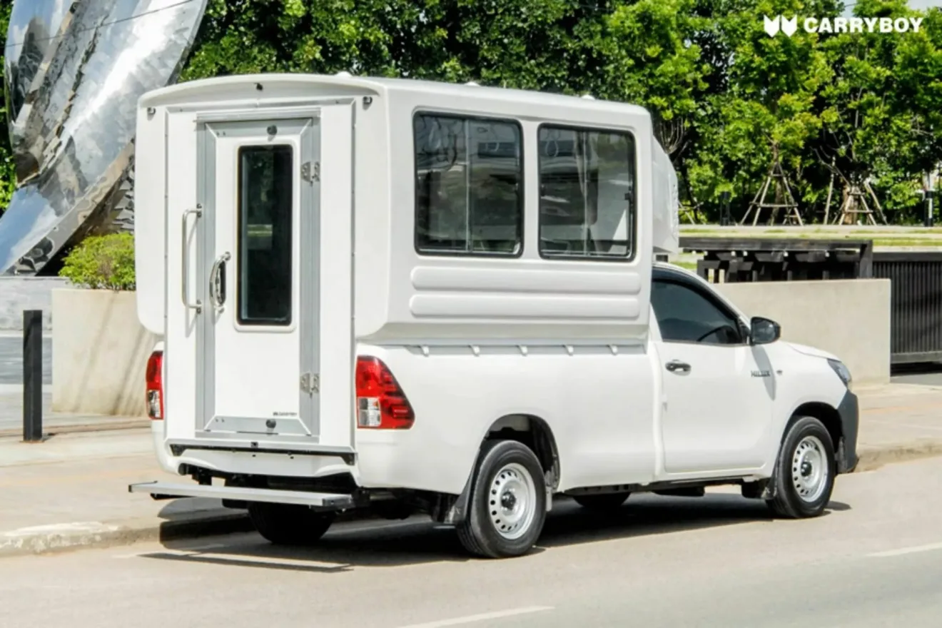 A frase “que não tem cão, caça com gato” poderia ser perfeitamente aplicada no caso da Toyota Hilux na Tailândia. Isso porque a empresa Carryboy transforma a caminhonete média em um mini ônibus com capacidade que varia de 8 a 10 passageiros. Tudo isso com um kit de conversão que pode ser aplicado até em uma Hilux usada.