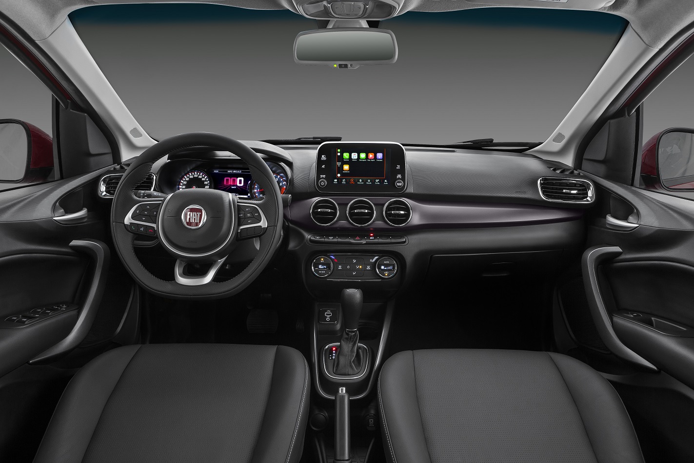 Na cabine, o Cronos manteve o mesmo desenho do Argo, com destaque para o bom acabamento e a central multimídia com tela de 7 polegadas compatível com Apple CarPlay e Android Auto — que permite ainda acesso ao Waze e envio de mensagens de texto pelo comando de voz via Whatsapp.