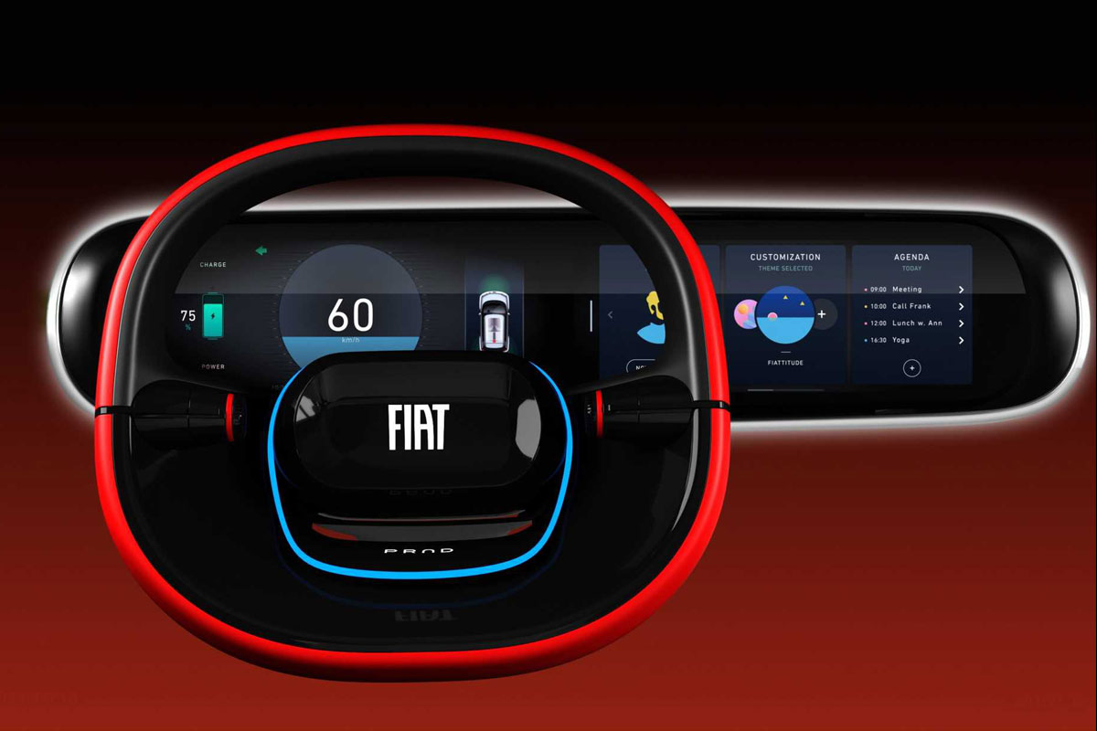 Já o visual, aposta no sentido mais quadrado possível, fazendo uma ponte com modelos icônicos como o 147 e os primeiros Uno e Panda. No caso do Concept Centoventi, os faróis são em LED, com as famosas linhas que ficaram famosas no Uno dos anos 80 e 90, e agora o logotipo é formado apenas pelo “lettering” da Fiat.