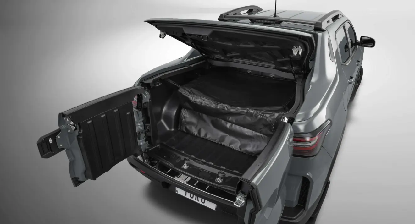 Outra novidade do habitáculo é a inclusão de entradas USB para os passageiros do banco traseiro, com conectores nos padrões USB-A e USB-C. Essa atualização na cabine varia conforme a versão e contribui para reforçar a identidade de cada configuração da família. Falando das dimensões, todas as versões oferecem 4,95 m de comprimento, 1,84 m de largura, 1,68 m de altura e 2,98 m de entre-eixos. A caçamba oferece 937 litros.