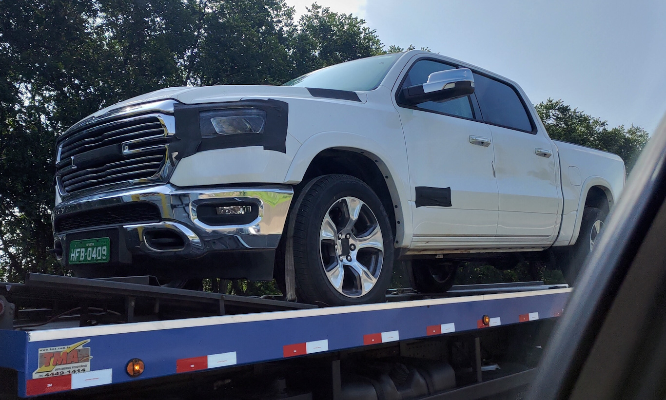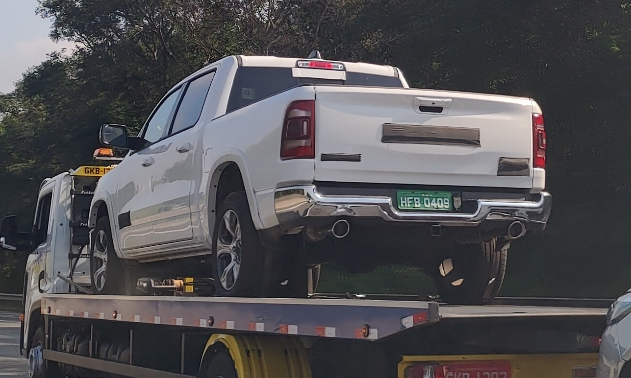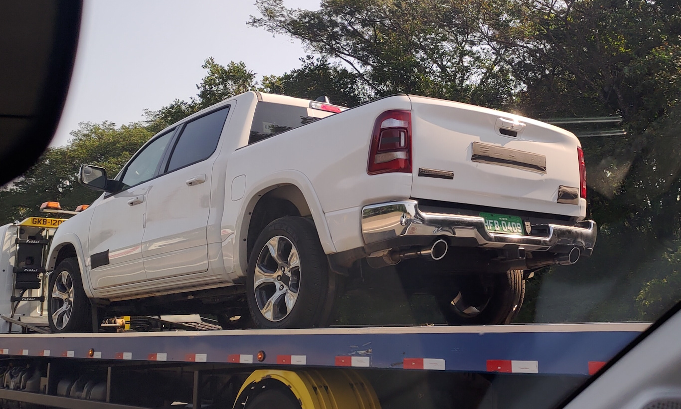 Lá nos EUA a RAM 1500 Laramie tem opção de motor V6 gasolina, V8 HEMI, V8 HEMI com sistema micro-híbrido e V6 diesel. Não foi possível identificar qual motor equipava a unidade flagrada, mas o V6 gasolina está descartado pois é o único que tem saída única de escape – a picape flagrada trazia saída dupla.
