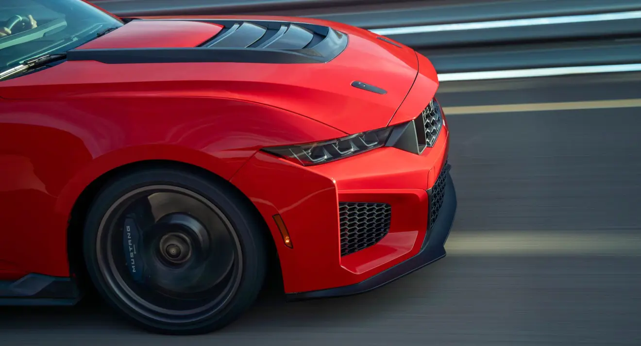 Apesar dos números de desempenho não divulgados, avanços aparecem na barra estrutural de magnésio e elos de suspensão forjados no lugar de componentes de aço, contribuindo para uma redução adicional de peso. Segundo a Ford Racing, o aprendizado obtido nas pistas e no desenvolvimento do Mustang GTD foi essencial para aproximar o comportamento dinâmico do Dark Horse SC ao de um carro de corrida.