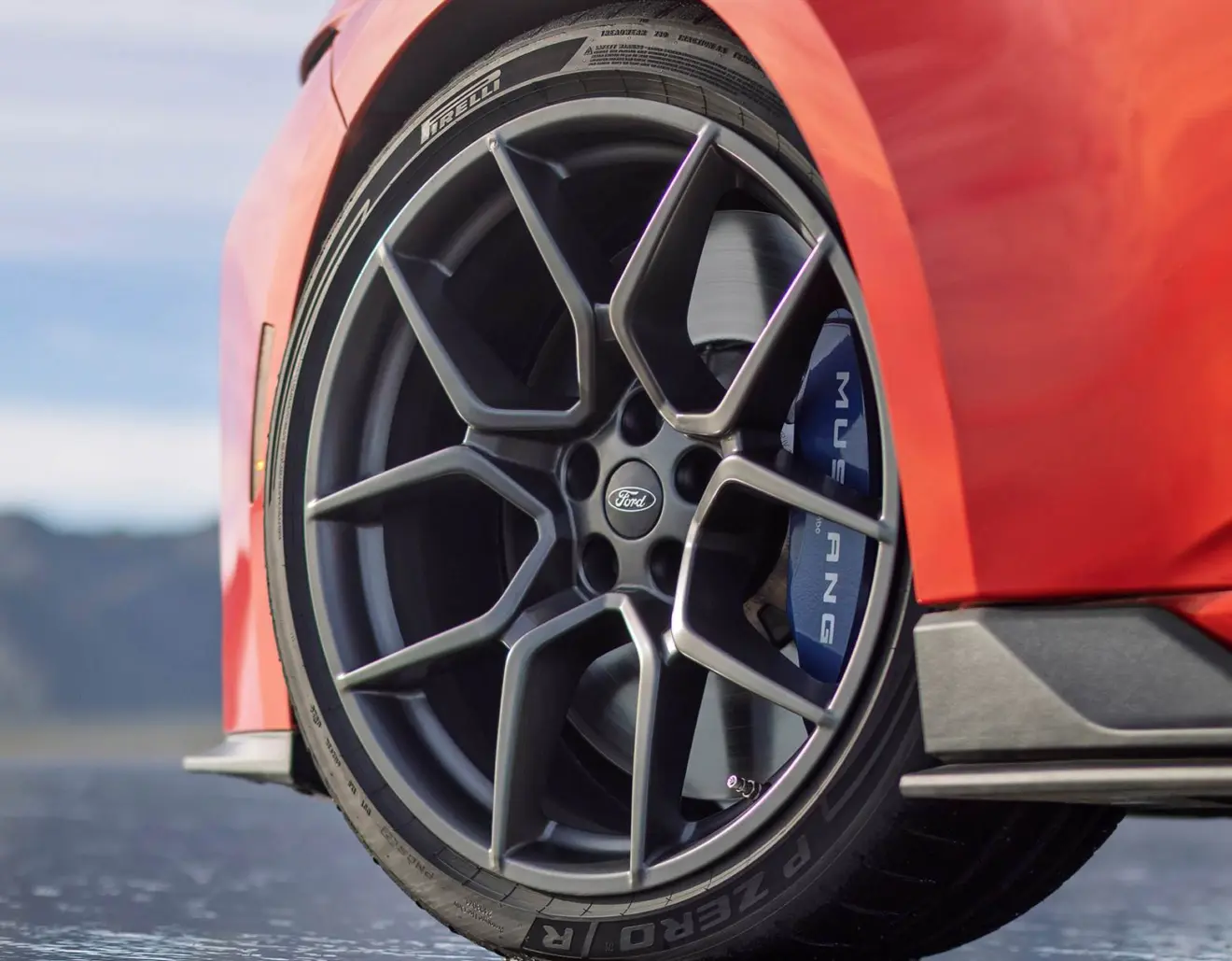 Os pneus têm medidas 305/30R20 na dianteira e 315/30R20 na traseira e utilizam tecnologias herdadas do Mustang GTD para entregar elevados níveis de tração. Já o conjunto de frenagem utiliza freios Brembo com pinças dianteiras de seis pistões e traseiras de quatro pistões, associadas a discos fundidos, os mesmos utilizados no Mustang Dark Horse 5.0.