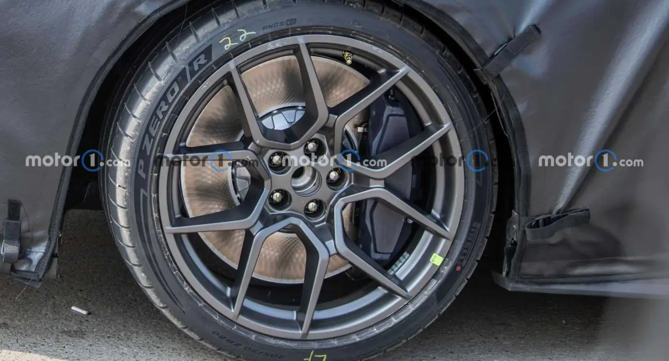 A unidade flagrada estava sob forte camuflagem, escondendo detalhes do exterior, mas não aparenta ser muito diferente de um Mustang padrão. Uma diferença está nos para-lamas alargados para acomodar pneus mais largos. As unidades fotografadas utilizavam Michelin Pilot Sport Cup 2 e Pirelli P-Zero R (foto abaixo), ambos desenvolvidos para pista.